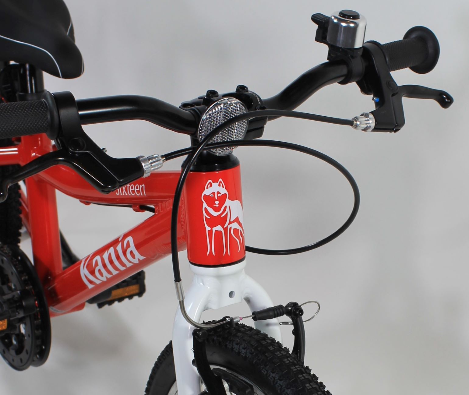 Die Kania Sixteen haben bewusst in der Grundausstattung keinen hohen BMX-Style-Lenker, um eine gebücktere Sitzposition zu bewirken. So gehen Stöße vom Hinterrad nicht direkt auf (noch nicht voll ausgewachsene) Bandscheiben/Wirbelsäule sondern es wird viel auf die Arme abgeleitet. Ferner ist in dieser Sitzposition mehr Last auf dem Vorderrad, was ein sicheres Lenken und eine bessere Straßenlage bewirkt. Für den reinen urbanen Bereich mit glatten Radwegen und ohne viele Bordscheinkanten/Unebenheiten können wir das Rad auch mit einer Hochlenkereinheit ausrüsten (oder nachrüsten), in diesem Zusammenhang wäre auch sinnvoll aus obigen Gründen breitere Reifen zu wählen.