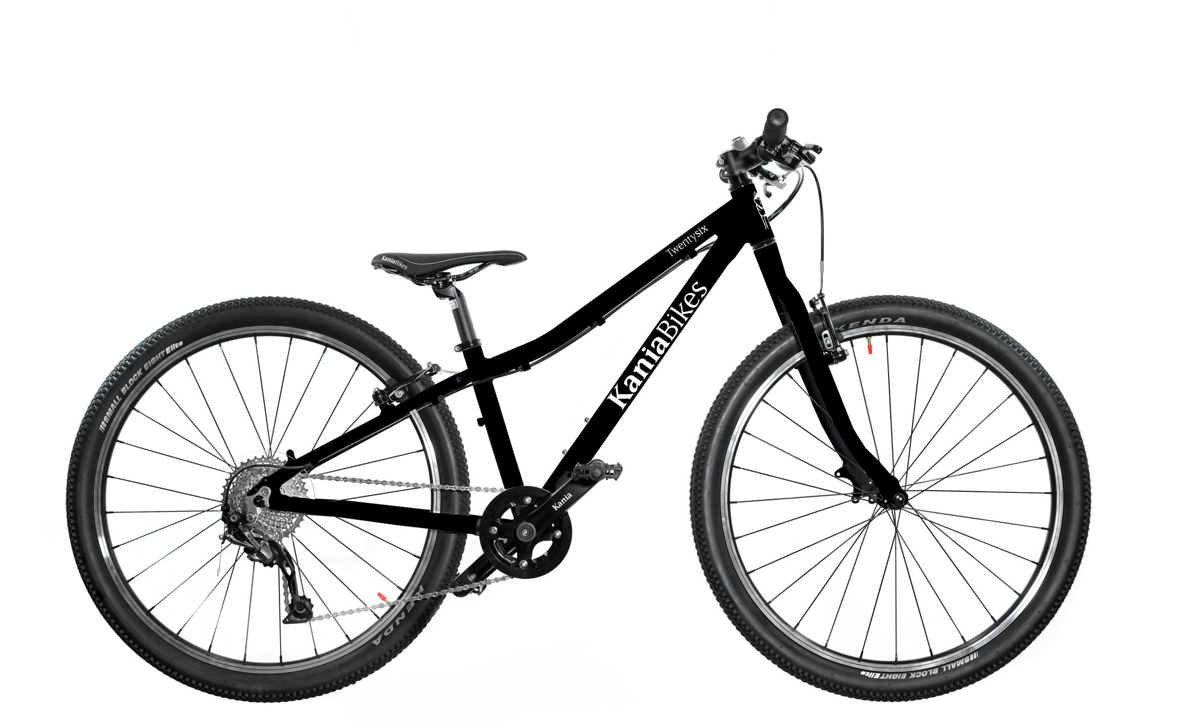 Der Rahmen beide Ausstattungs-Varianten ist identisch, es kann also auch die V-Brake-Variante ggf. nachträglich mit Scheibenbremsen (IS2000 bzw mit Adapter auch Postmount) umgebaut werden. Entsprechend unserer Philosophie des Leichtbaus verfolgen wir kein "Gewichtshungern" auf Kosten von Stabilität oder Praxistauglichkeit nur um die letzten Gramm zu sparen - unsere Rahmen wurden eher an den entscheidenen Stellen verstärkt (z.B. Übergang Unterrohr zum Steuerrohr) und z.B. mit entsprechend komfortablen breiteren Reifen serienmäßig ausgestattet. Durch Verwendung von Standart-MTB-Maß an Vorbau, Sattelstütze und Einbaumaß der Räder (100/135 mm Einbaubreite) kann durch Austausch einzelner Komponenten das Rad günstig "mitwachsen". Damit begleitet es das Kind länger und schont dabei den Geldbeutel der Eltern. Auch bietet es so genügend Optionen das Rad weiter mit ggf. schon vorhandenen Anbauteilen zu tunen. Entsprechend den unterschiedlichen Anforderungen ans Rad ist standartmäßig eine 152 mm Kurbel verbaut mit 30iger (wechselbarem) Kettenblatt.